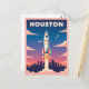 Celebrate Houston’s space legacy with this colourful retro‑style postcard featuring a rocket launch over the city skyline, vibrant sunset‑to‑night gradient sky, and bold “HOUSTON” typography – perfect for collectors, space enthusiasts, and vintage travel art lovers.