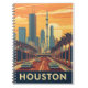 This Houston-themed notebook features a vintage-style illustration that captures the city's iconic skyline with a nod to its role in space exploration. The cover shows classic cars and palm trees along a street, with a rocket and a space shuttle on display against the cityscape. This spiral notebook is a perfect gift for travelers, space enthusiasts, or anyone who appreciates the unique, retro charm of Houston.