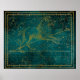 Vintage Illustrated Green & Gold Lion Star Map Poster