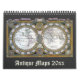 12 month vintage Illustration calendar featuring Antique World Maps. Europe, the Americas, Africa, Asia and the Far East are all represented.