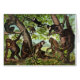 Vintage artwork featuring a variety of monkeys and apes including a gorilla in a jungle scene where some are in the trees while others are on the ground. The card is blank inside for your own message.