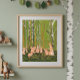 This hand painted vintage illustration by Sibylle Von Olfers comes from the book "The Tale of the Rabbit Children", 1906. There are beautiful details of the rabbit children and the birch trees, as well as a deep and vivid color palette as well. Its woodsy palette and theme can complement any decor and add a touch of whimsy too.