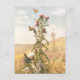 This postcard is a reproduction of a vintage illustration showing a purple thistle surrounded by butterflies in a field/meadow.