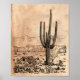 Vintage image Desert Cactus Tea Stained Paper Poster