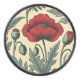 Vintage-Inspired Red Poppies Pattern Hockey Puck
