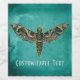 Customisable labels feature a dark and distressed teal background with detailed and colourful vintage iridescent moth illustration.