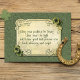 Traditional Irish blessing on parchment label with fancy scrolled border and edging with shamrocks on a green floral background.