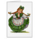 Vintage Irish girl illustration in traditional dress wearing a green dress, white apron, and a green plaid shawls. Fun for St. Patrick's Day.