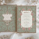 Embrace the timeless elegance of our vintage-inspired wedding invitation, perfect for couples seeking a touch of classic sophistication for their special day. This invitation features a harmonious palette of muted teal, tan, and blush, layered with intricate scrollwork and delicate floral patterns. Each corner blooms with symmetrical botanical motifs, evoking the grandeur of Islamic art. The central frame, in a soft beige hue, offers a serene canvas for your wedding details, while the flip side provides a full display of the exquisite pattern, anchored by a subtle monogram and date feature. This invitation is a testament to exquisite craftsmanship and design, ideal for a romantic, cultured affair.