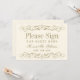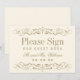 Decorative swirls and flourishes frame this elegant vintage inspired wedding guest book sign with monogram. Ivory and antique gold design colours.