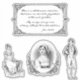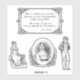 Inspiring Jane Austen quote in ornate engraved banner, etched portrait of the author in floral ornamental frame and vintage engraved illustrations of Mr. Darcy and Elizabeth Bennet.