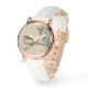 Antique watercolor artwork of a bird on a blossom branch on pretty ladies watch.