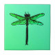 Vintage Japanese brush drawing of a dragonfly, digitally enhanced and coloured, in shades of emerald and blue-green, on a softly shaded ombre background