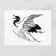 Digitally enhanced detail from a vintage Japanese sketch of a flying crane in black and white