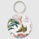 Vintage Japanese drawing, Peonies and Sparrow Key Ring