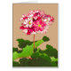 Note card in a vintage Japanese illustration of a single pink hydrangea flower, accented with white, and leaves in emerald and lime green, on a beige background, digitally enhanced