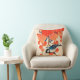 Throw pillow in a vintage Japanese painting of a blue jay bird and wild grapevine, in shades of autumn orange and deep blue, on a light beige background, digitally enhanced