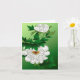 Card in a vintage Japanese illustration of large, white peony blossoms, with green leaves, on a soft green gradient background, digitally enhanced and coloured, with customisable inside greeting