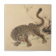 The spotted leopard is a figure associated with Asian culture and this vintage painting depicts an angry spotted animal as part of Japanese folklore.