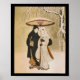Vintage Japanese artwork for the living room or office. Woman and man walking with umbrella in the show.