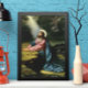 Vintage illustration religious design featuring Christ in the Garden of Gethsemane by Heinrich Hofmann, 1886. Jesus Christ is praying in Gethsemane wearing a long flowing robe and praying while looking up towards Heaven with a star shining down, he is deep in thought and prayer. Gethsemane is a garden at the foot of the Mount of Olives in Jerusalem, most famous as the place where Jesus and his disciples prayed the night before Jesus's crucifixion.