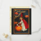 Vintage Halloween witch drawing names out of a jack-o-lantern. Vintage Wishes from a precious little reminder of Halloween past. Click customise and add your own text, create a party invitation or birthday greeting.