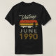 "Step back in time with our stylish vintage t-shirt, designed for those who appreciate the charm and nostalgia of yesteryears. Featuring a retro-inspired design with the word ""Vintage"" set against a sunset backdrop with mountains and trees, this shirt proudly highlights ""June 1990"" in bold, classic typography.