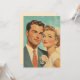 A romantic 1950s-style illustration of a newlywed couple, glowing with love and dressed in classic wedding attire. The image captures a timeless sense of joy and elegance, perfect for retro-themed decor, wedding inspiration, or vintage advertising.