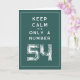 Vintage keep calm text custom 54th Birthday card. Fun Keep Calm and Carry On quote for 54 year old. Make your own age specific spoof with custom age number. Cool greeting card idea for men or women. Rustic distressed typography template. Custom colour background. Personalise with message inside.