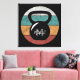 Vintage kettlebell custom monogram name initial with multiple coloured striped circle grey, turquoise, orange and red on a black blackground. Perfect for anyone who is lifting, fitness, training, bodybuilding and going to the gym.