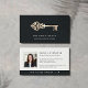 Elegant business cards for real estate agents or realtors feature a vintage skeleton key illustration in faux gold foil with your name or business name beneath. Add your full contact details to the reverse side in soft off-black on a white background, along with a photo.