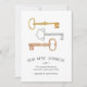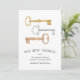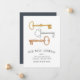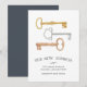 Charming and chic moving announcements let friends and family know about your new home sweet home! Design features a trio of vintage keys in gold, silver and copper watercolor, with "our new address" beneath in elegant block typography. Use the template fields to add your new address and name(s).