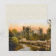 Postcard with a vintage photo lithograph of Kilkenny Castle in County Kilkenny, Ireland from 1895 pictures a mediaeval castle covered with ivy with a sunset in the background and a river in the foreground. Digitally cleaned, enhanced and artistically rendered to resemble pen and ink with watercolors. Kilkenny Castle was built in 1195 by William Marshal, 1st Earl of Pembroke to control a fording point on the River Nore.
