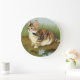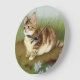 Clock featuring a vintage kitten illustration. A cute tabby kitten hiding in a flower garden. A perfect gift for cat lovers and Victorian art collectors.