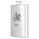 Elegant stainless steel flask, with a vintage illustration of a knight, in full armour, on horseback. Personalise the grey one letter monogram and name, to suit your needs. Great personalised gift idea.