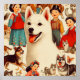 Vintage Korean Jindo Illustration Poster