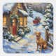 Vintage Labrador Retriever Christmas Cottage Square Sticker