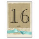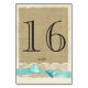 Vintage lace, aqua bow and burlap printed table number card to compliment our invitation set, can be personalised and ordered individually. All parts of this card are printed. There is no real ribbon, burlap or lace attached.