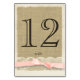 Vintage lace, blush pink bow and burlap printed table number card to compliment our invitation set, can be personalised and ordered individually. All parts of this card are printed. There is no real ribbon, burlap or lace attached.