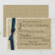 Pretty vintage lace with a navy blue bow country bridal shower invitation. Change text as needed. Unique and not traditional. This invitation is completely printed. There are no real ribbons, lace or burlap attached.