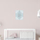 An elegant welcome sign for a baby boys baptism featuring white vintage lace corners and a delicate sky blue background.