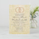 Subtle parchment paper layered with vintage lace and embellished two circles joining together with a cross centred among them in an antique rose gold hue. Traditional religious wording that can also be customised to meet your exact style or colours.