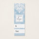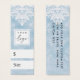 DIY price tag with custom logo template on a vintage dusty blue background with a damask or lace design at the top. Note that the tags do not come with pre cut holes, you need to make your own holes with a hole punch. Optional printed guide for making your own holes.