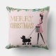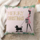 Vintage Lady walking black poodle Merry Christmas Cushion