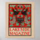 This vintage Lakeside Magazine cover by Louise Bancroft Stevens features an elegant floral peacock design, beautifully merging botanical details with the graceful silhouettes of the peacocks. The peacocks' tail feathers flow outward in an intricate display of blossoms and leaves, creating a harmonious blend of natural and ornamental elements. The composition is delicately balanced with soft, vintage tones and a symmetrical arrangement that draws the viewer’s eye across the page, evoking the Art Nouveau style of the early 20th century. This cover art exemplifies Stevens' refined, decorative approach, celebrating both nature and artistic elegance.