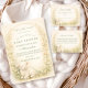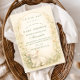 A timeless, heirloom-inspired design featuring a peaceful sleeping lamb framed within a delicate oval wreath of soft meadow florals. Tiny ivory and blush blossoms with airy greenery create a romantic botanical border against a warm parchment background. The gentle shading and antique storybook feel give this design a refined, elegant presence — perfect for a classic, neutral, or spring celebration. Soft, sentimental, and effortlessly graceful.