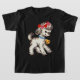 The t-shirt feels and looks great quality, a good thick cotton. It will be a little big for my son, but that means he will be able to wear it and not out grow it too soon. The print was as described on the order when personalised. True size, shape and colour T-shirt- thanks.