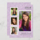 Announce your high school or college graduate in style with this "Vintage Collage" graduation announcement and party invitation. Two-sided card features four (4) photos of the graduate with a soft floral background and vintage typestyles. Lavender / violet purple, white and charcoal grey colours.