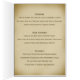 A vintage, distressed paper look background in shades of warm and creamy beige forms the basis of this stunning Wedding Reception Menu card. Decorative leaf scrollwork in a damask style, shaded in golden neutral tones complete this fully customisable design. Other sizes/formats and matching items are available in store.