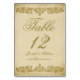 A vintage, distressed parchment paper look background in shades of warm, creamy beige forms the basis of this stunning and elegant double sided Wedding Table Number template. Decorative leaf scrollwork in a damask style, shaded in golden neutral tones complete this customisable design. Horizontal (landscape) versions and matching items are available in store.